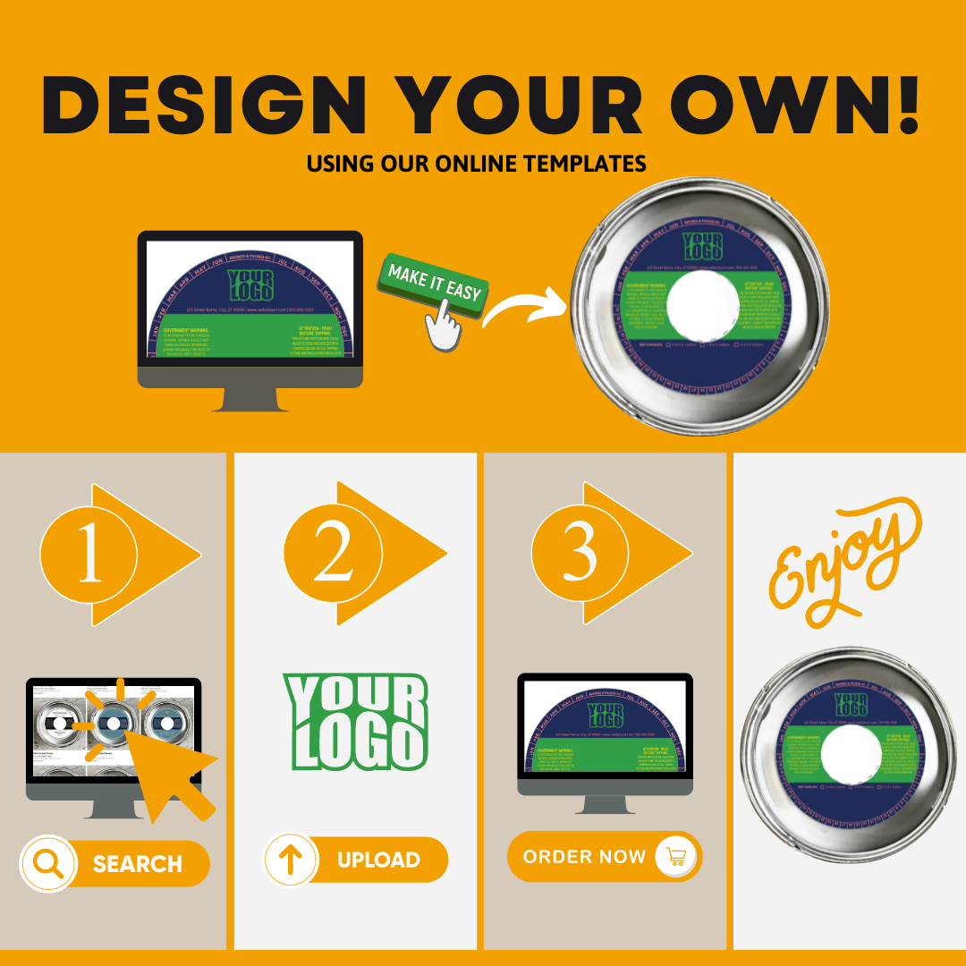 Browse our collection of easy to complete do-it-yourself (DIY) keg collar templates. Simply upload your logo and fill in the information fields for a personalized keg collar in matter of minutes.
