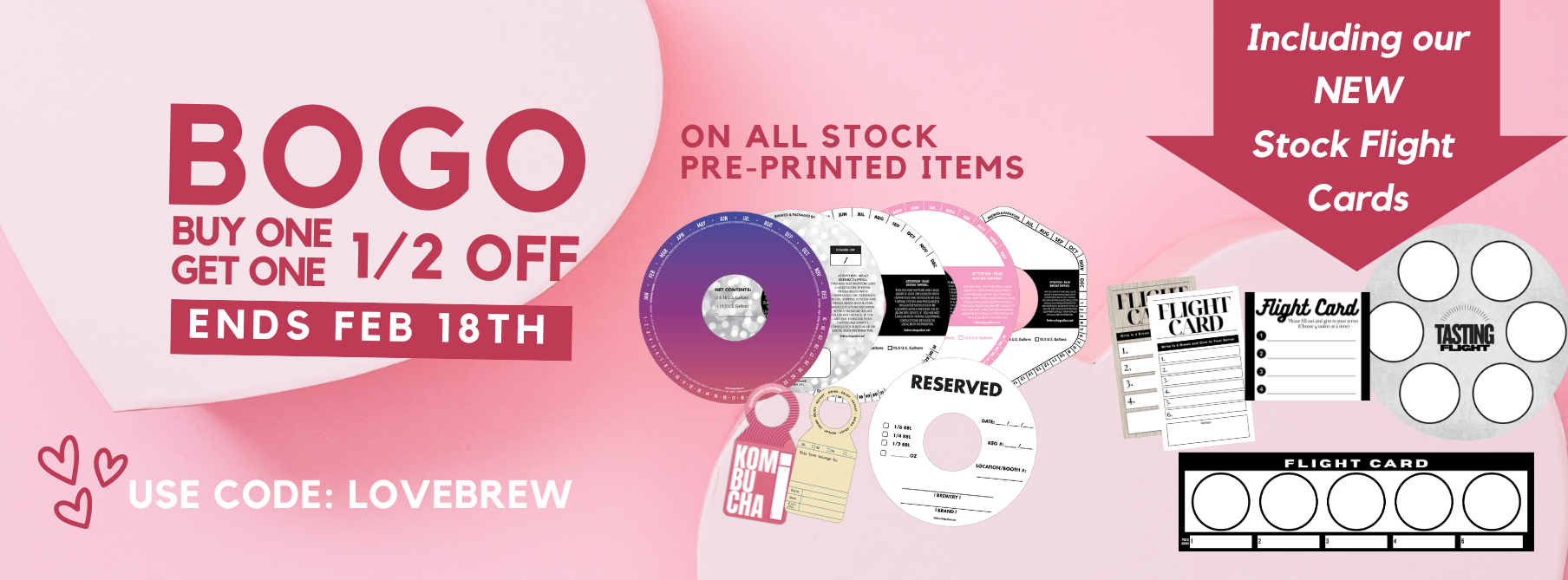 Visit our pre-printed stock shop with various ready-to-ship keg collars, keg caps, coasters and required government health warning labels.