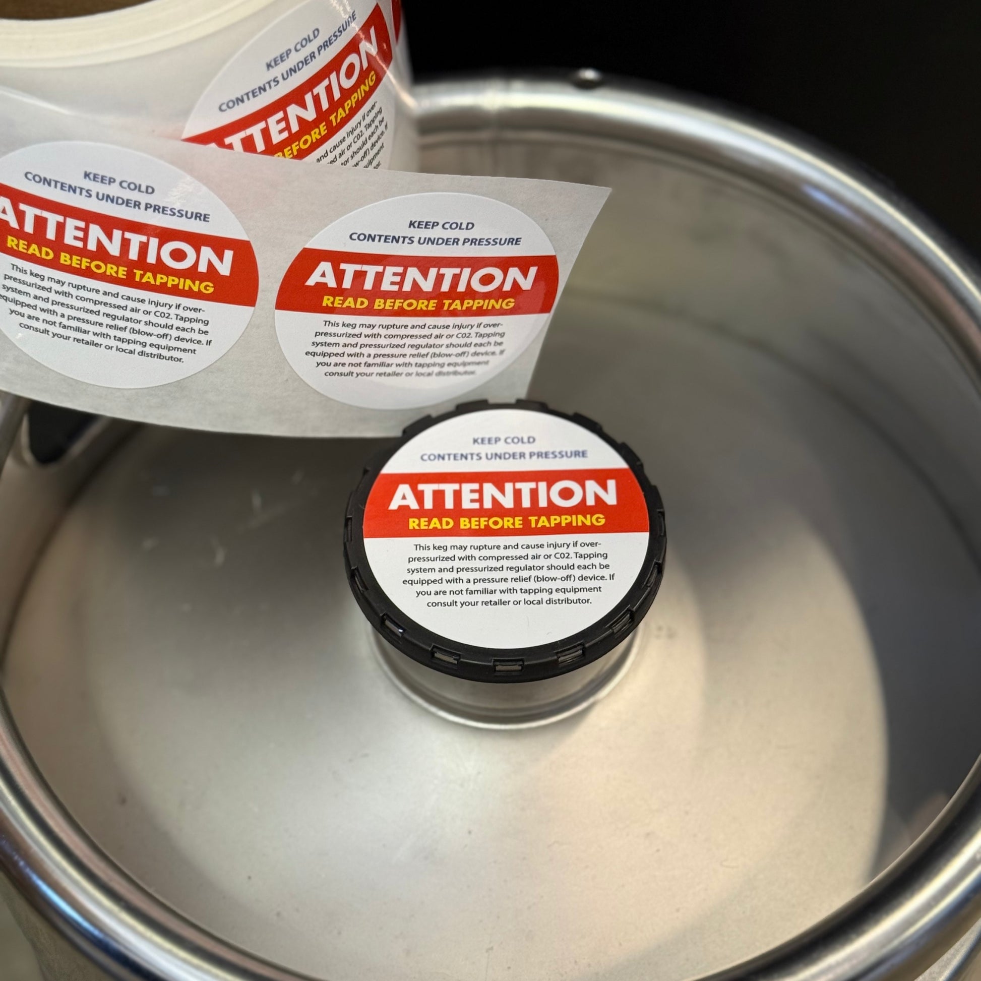 Full Color ATTENTION: Read Before Tapping Keg Cap Stickers (2.25") – Pack of 50